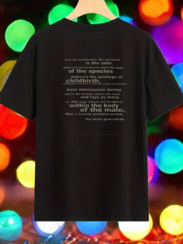 The "Throwback Nirvana Seahorse Shirt Retro Reprint" is a unisex adult t-shirt featuring a design related to the band Nirvana with a retro vibe. The shirt comes in a regular fit with short sleeves and is available in sizes ranging from small to 3XL. This t-shirt allows for personalization, such as specifying the size and color desired. Perfect for fans of Nirvana looking to add a nostalgic touch to their wardrobe.